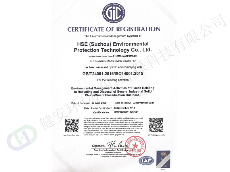 公司先后獲得環(huán)保領(lǐng)域企業(yè)AAA級信用、資信等級認(rèn)證、五星級售后服務(wù)體系認(rèn)證,并通過了ISO9001, OHSAS18001/ OHSAS9001等管理體系以及特種行業(yè)名錄管理證等多種認(rèn)證。