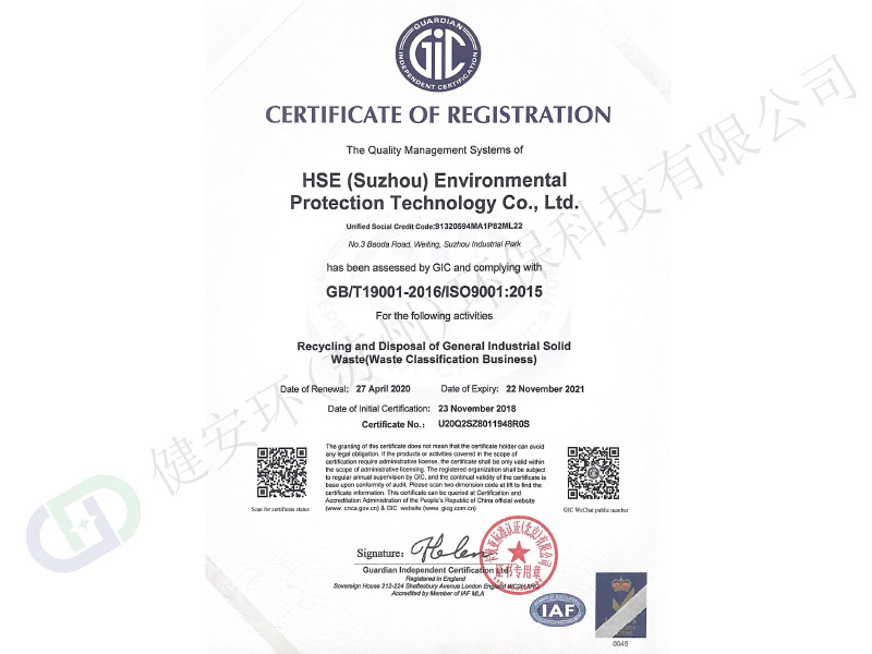 健安環(huán)(蘇州)環(huán)??萍加邢薰咀溆诿利惖膱@林城市--蘇州,成立于2017年6月,目前公司擁有占地面積7000m2處理基地,自有多種運(yùn)輸車輛,是一家擁有完善的生產(chǎn)工藝,集再生資源回收、加工、利用;垃圾分類、處置、利用為一體的集約化、專業(yè)化綜合型環(huán)保企業(yè)。